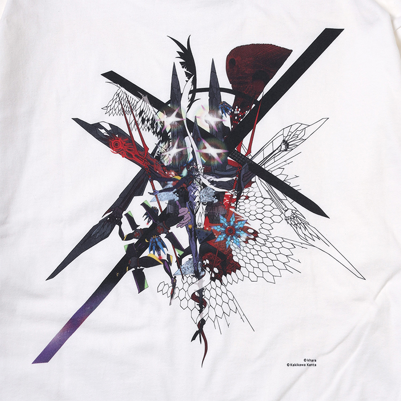 機体をベースに力強いラインと柔らかい印象のフラワー、そこに刻まれたメッセージが絶妙なバランスで構築され完成したこのアートをTシャツというキャンバスで表現した1枚。