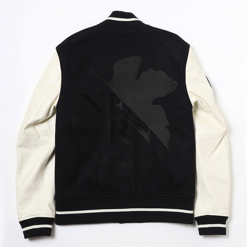 中綿入りで保温性が高く、寒い季節でも活躍する仕上がりにも注目。これぞメッセージ性とデザイン性を両立させたエヴァファン垂涎のベースボールジャケット。是非ともその身で体感ください。