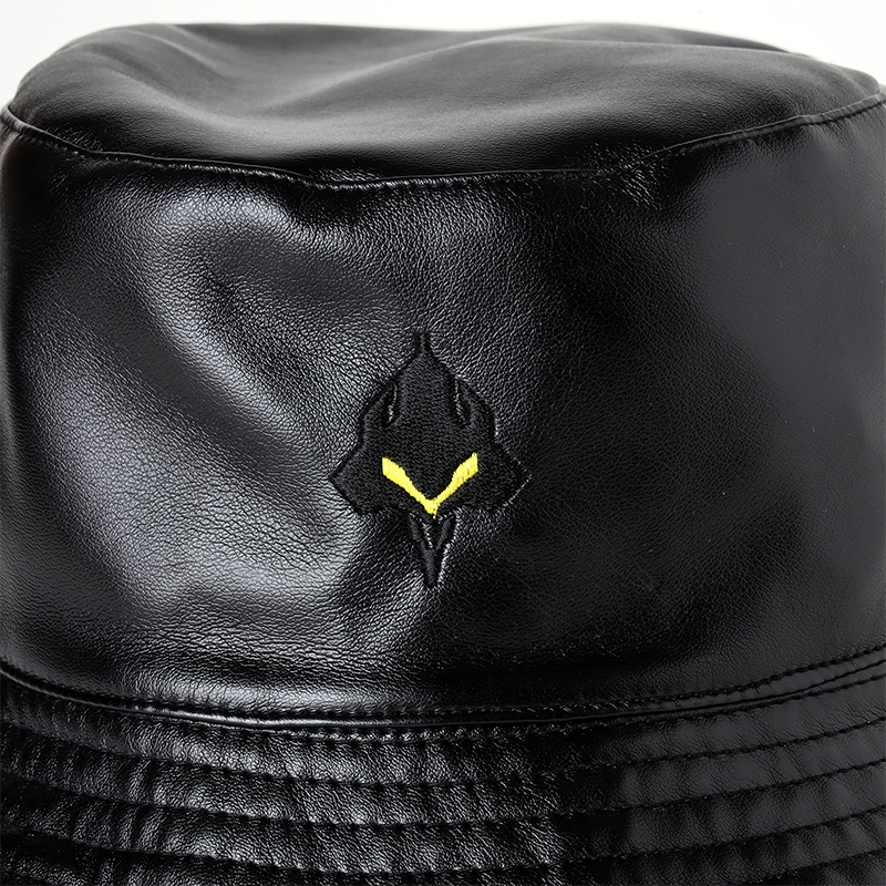 贅沢なリバーシブル仕様のKANGOLとのコラボハット光沢感のあるビーガンレザーと控えめな光沢のナイロン素材によるリバーシブル仕様のハットが完成。