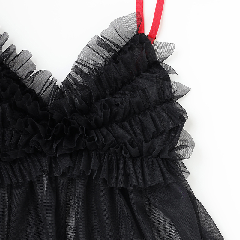 チュール素材に合わせた肩紐のワンポイントカラーがオシャレな仕上がりに。