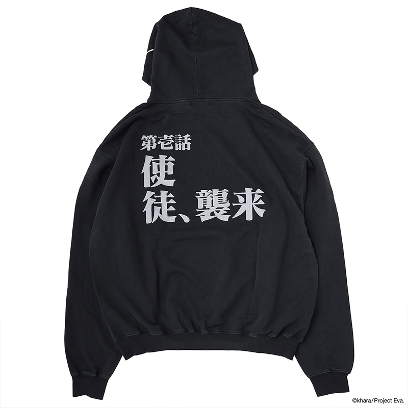 - TVシリーズ『新世紀エヴァンゲリオン』から、第1話「使徒、襲来」をデザインソースとしたParka。前面には第1話の名シーンを、背面にはタイトルロゴをそれぞれデザインしました。フードにはEVANGELION:95のアイコン"95"をプリント。