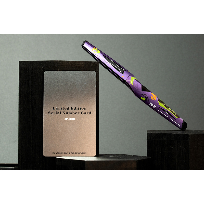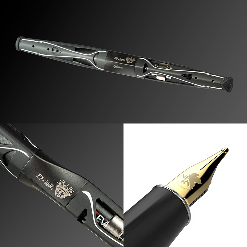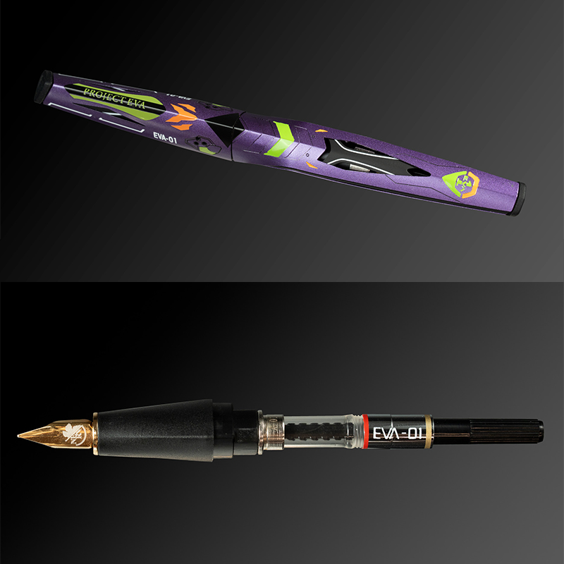 黄金に輝くペン先とエヴァの世界観が融合しています。