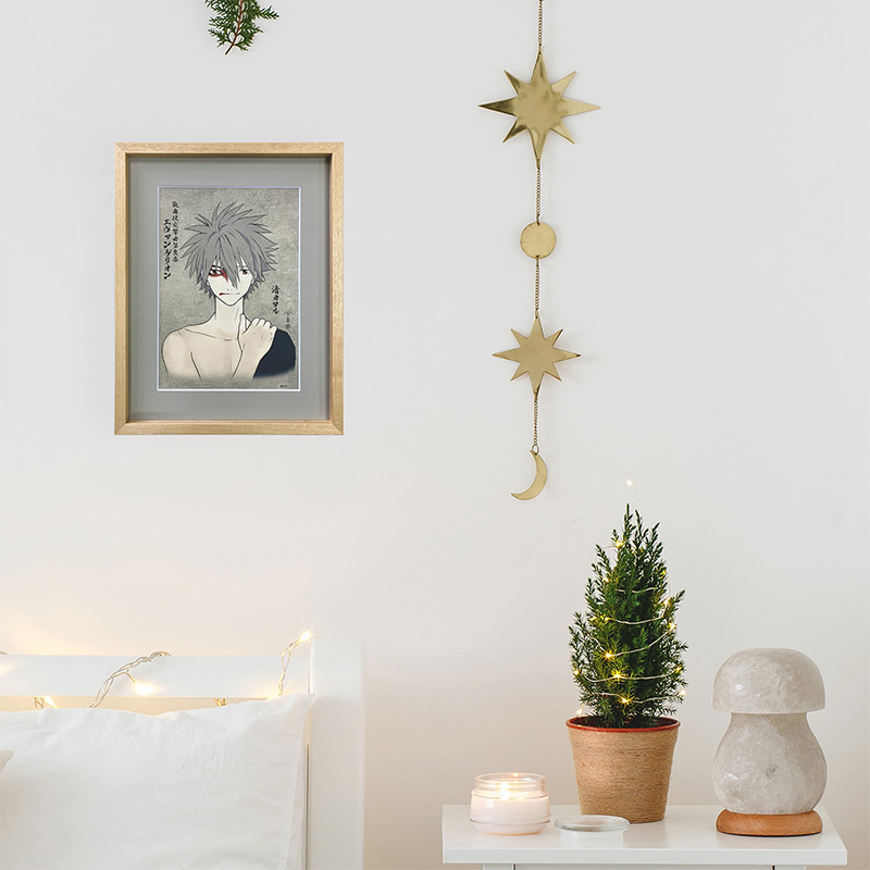 浮世絵の寸法は現代絵画と縦横比が異なるため、既成の額縁では最適なサイズを見つけるのが困難です。 より作品が美しく見えることを考慮し、版三がオーダーした高級感ある額縁に入れてお届けいたしますので、そのまま飾ってお楽しみいただけます。