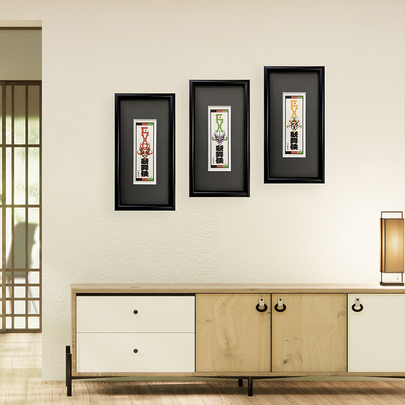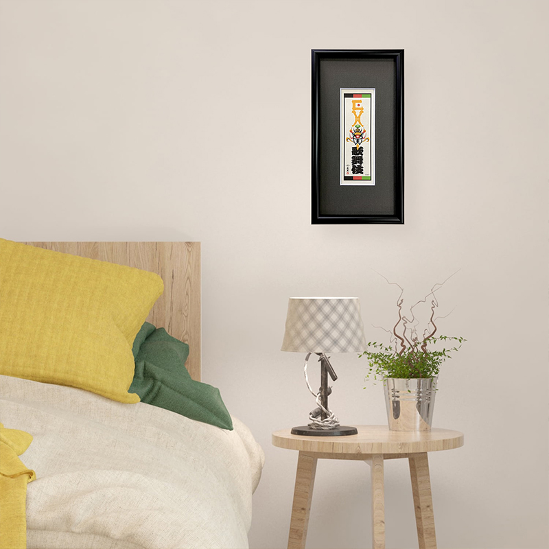 越前和紙に最新のデジタル版画技術「ジークレー」で高精細に印刷。 和の静寂の中にエヴァンゲリオンの存在感を封じ込めた、30周年記念にふさわしい千社札です。
