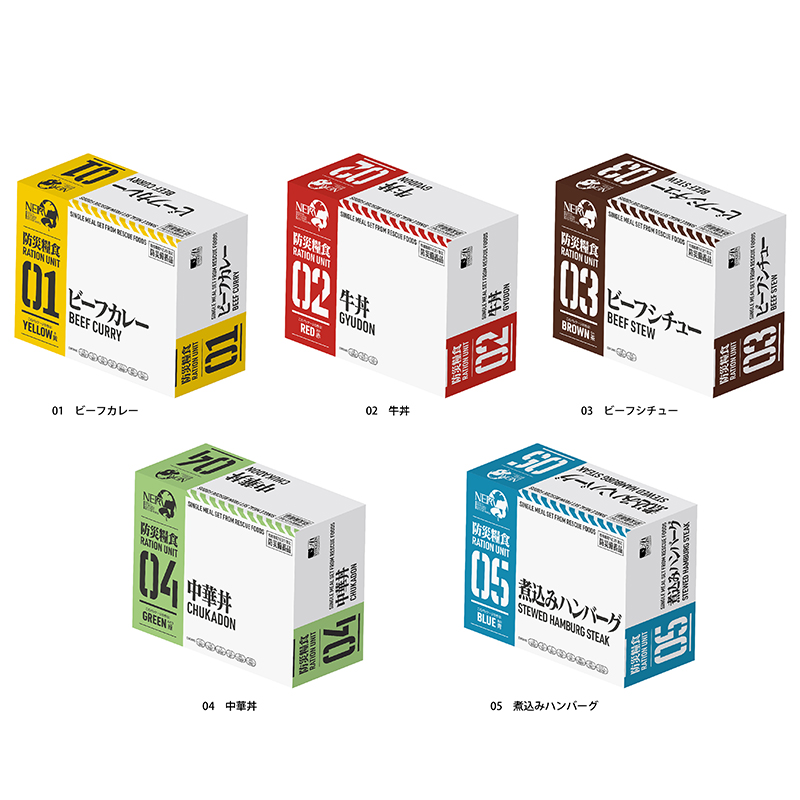 この「防災糧食」は、『エヴァンゲリオン』の作中に登場する特務機関NERVが、第3新東京市の防災備蓄品として指定・配備しているという独自の設定をコンセプトに開発されたもので、特務機関NERV防災アプリの開発等を行っているゲヒルンの協力のもと、専用パッケージを制作。