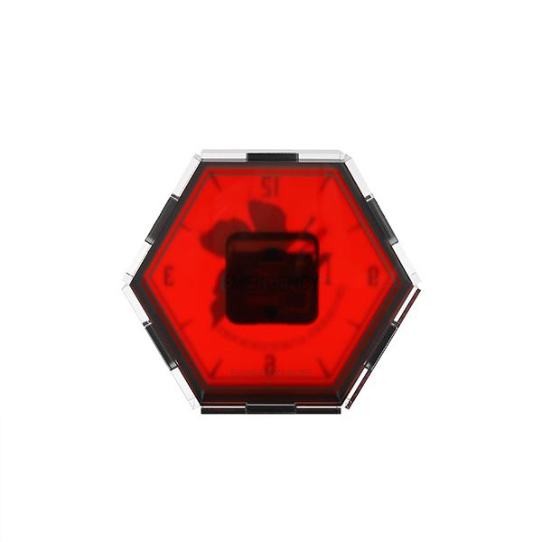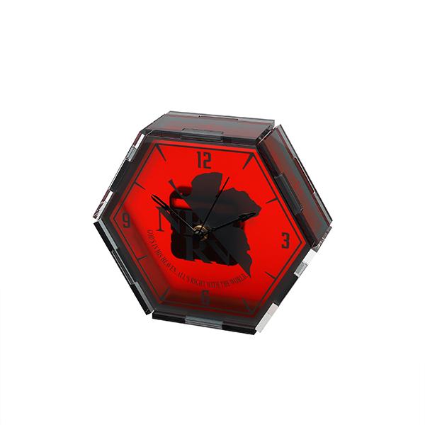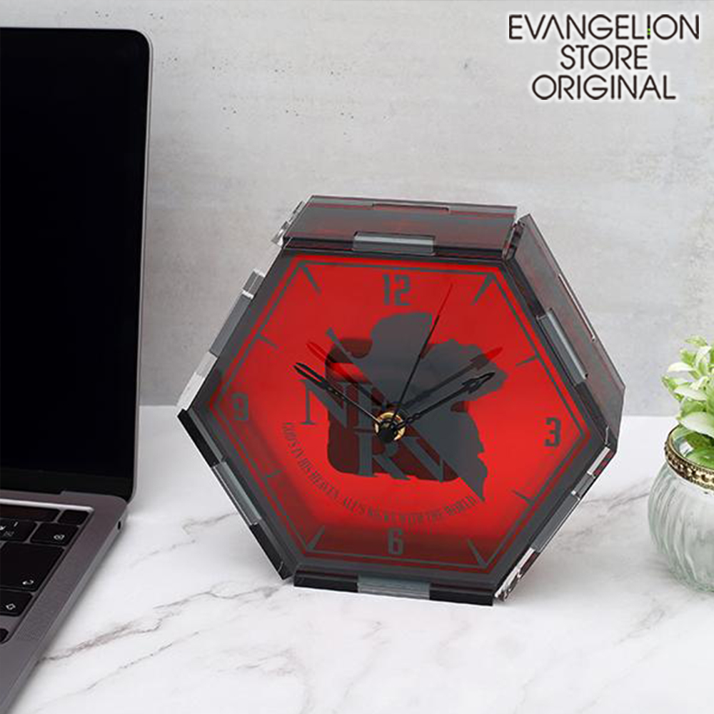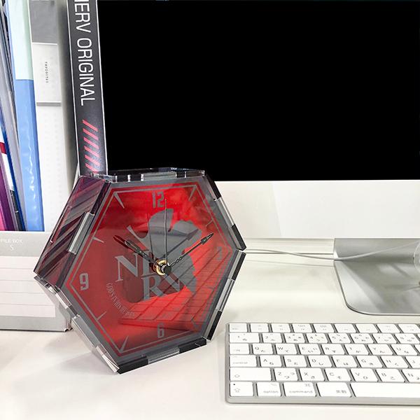 ネルフ本部のモニターでも印象的なEMERGENCYの赤い六角形のアイコンがアクリルの置時計になりました。