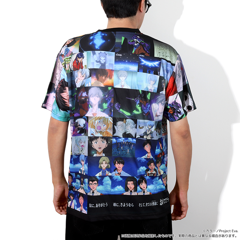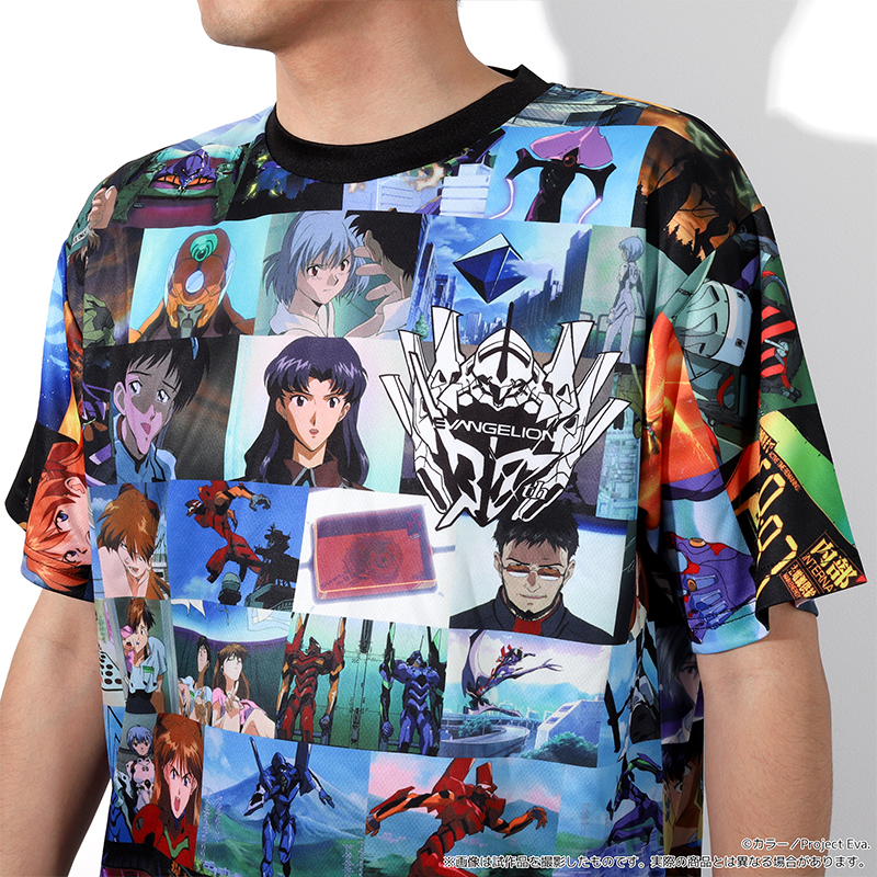 『新世紀エヴァンゲリオン』に登場する場面写が全面にデザインされたフルグラフィックTシャツです。