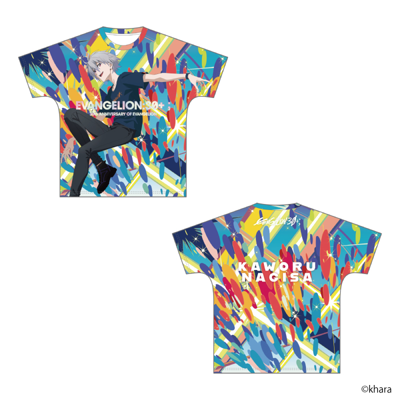 「EVANGELION:30+; 30thANNIVERSARY OF EVANGELION」の描き下ろしメインビジュアルを使用したフルグラフィックTシャツ。