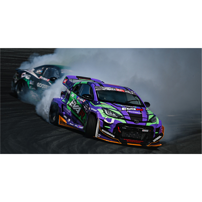 本商品は、2024年にエヴァンゲリオンレーシングが参戦したFORMULADRIFT JAPAN2024 Round.1(富士スピードウェイ)にて、世界のマスーこと益山航選手が搭乗したマシン「エヴァRT初号機 GOODRIDE GRヤリス」をベースにしており、精密なディティールやカラーリングはもちろん、1/43スケールならではの細部に拘ったハイクオリティな一台です。