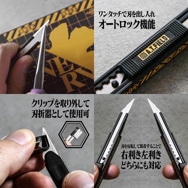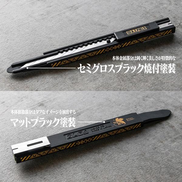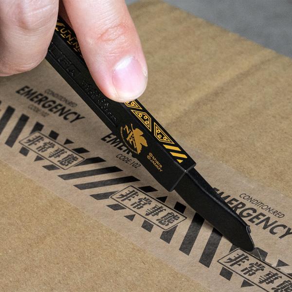 劇中に登場する「NERV」のメカニカルな構造物や装備品のイメージを、タフなワークツールのデザインとしてカッターナイフに落とし込み、エヴァの世界観を表現。