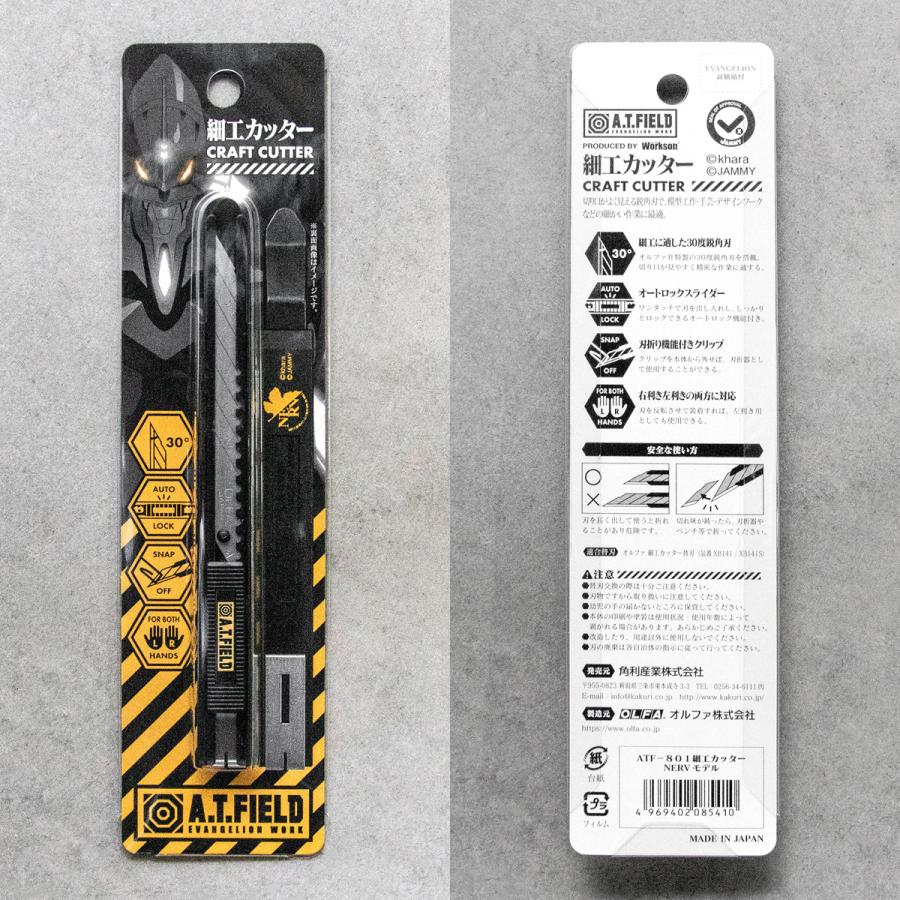 - ワークブランド「A.T.FIELD EVANGELION WORK」とカッターの国内トップメーカーであるオルファがコラボレーションした細工用カッターナイフが登場!
