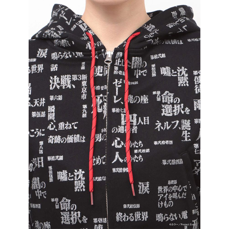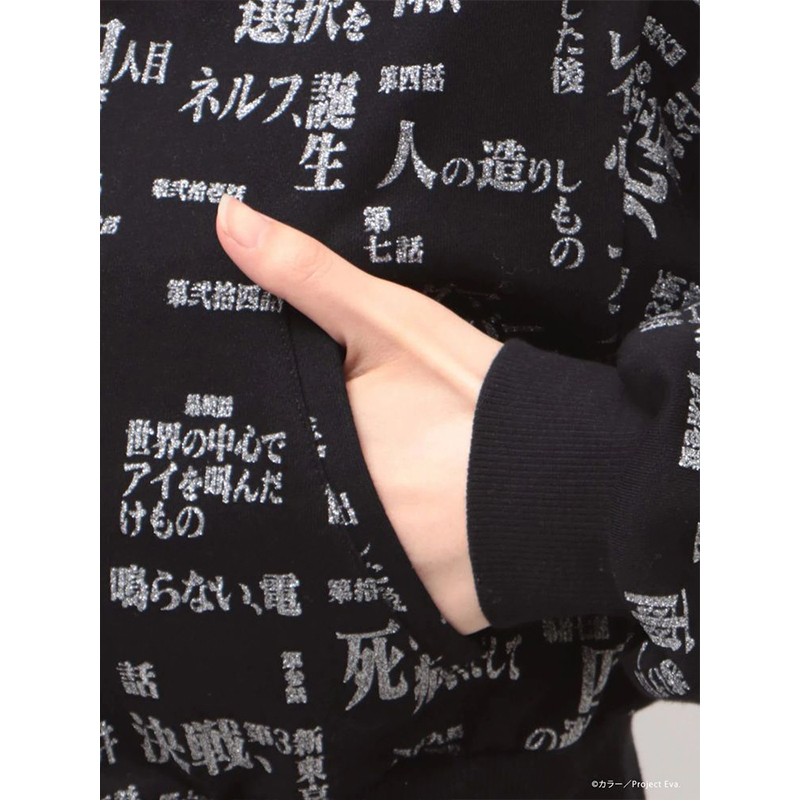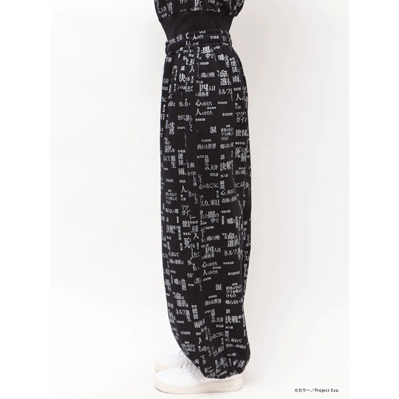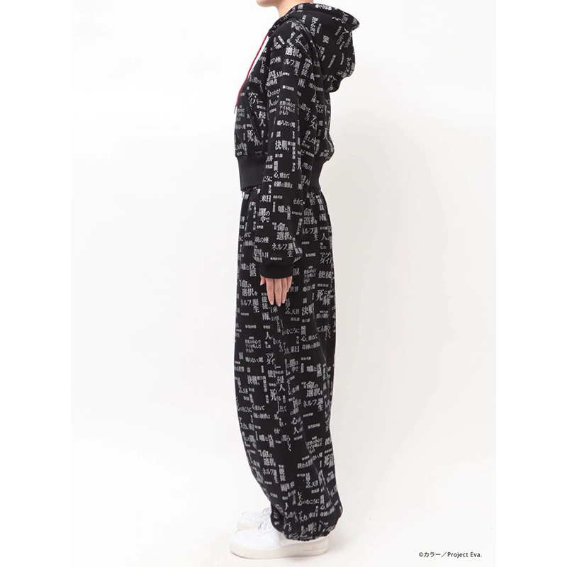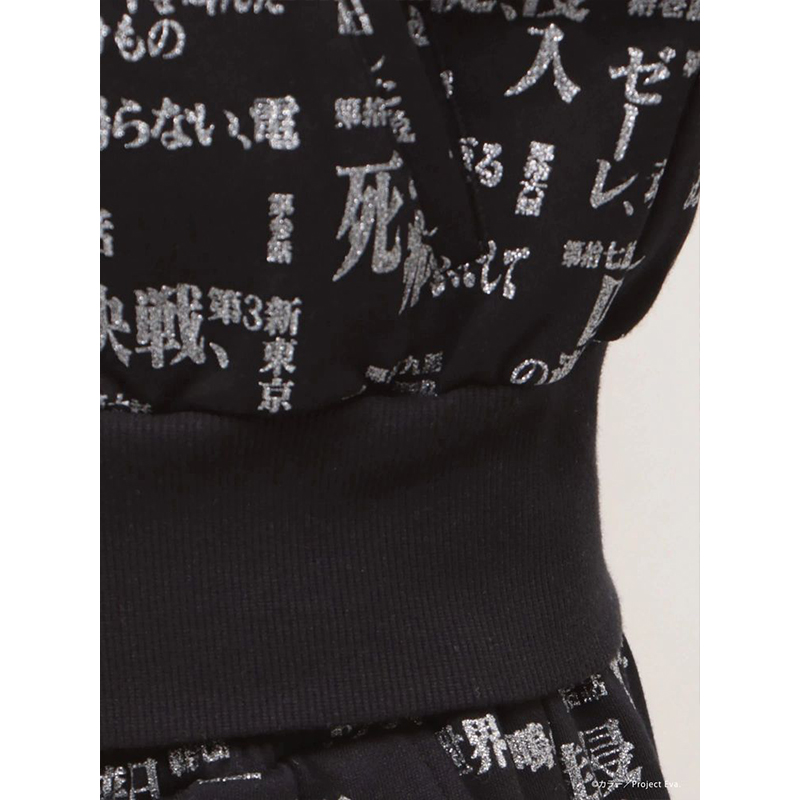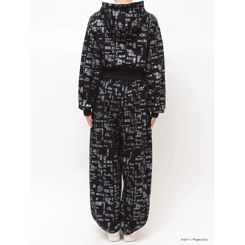 - 『新世紀エヴァンゲリオン』のサブタイトルロゴを全面にあしらった、存在感のあるスウェットセットアップ。