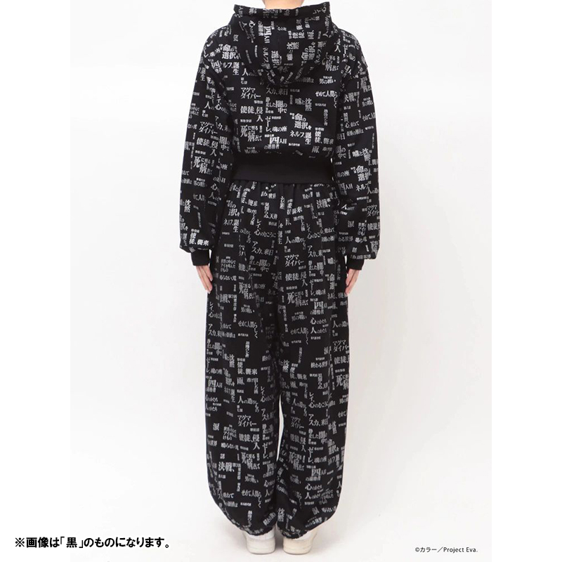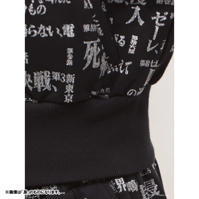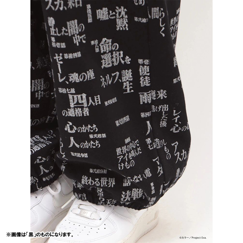 - 『新世紀エヴァンゲリオン』のサブタイトルロゴを全面にあしらった、存在感のあるスウェットセットアップ。
