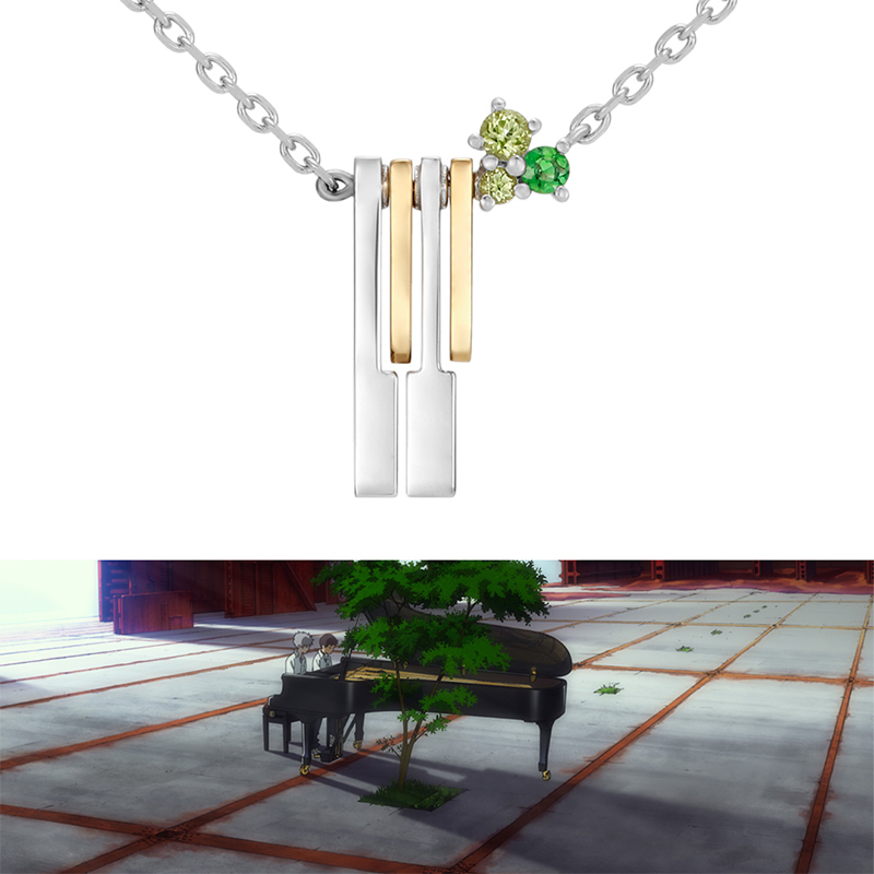 グリーンの天然石(ペリドット・グリーンカラートルマリン)は、 劇中でピアノの傍らに佇む木をイメージしています。