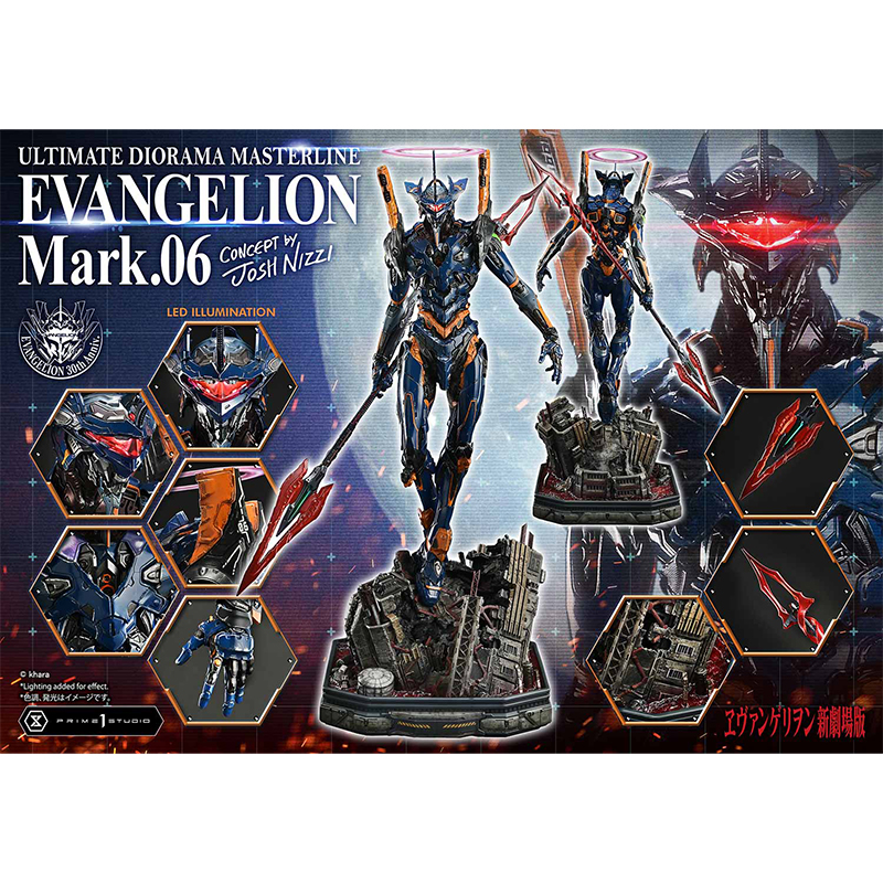 エヴァンゲリオンMark.06の神々しさを、ジョシュ・ニジー氏ならではのコンセプトワークで具現化しました。瓦礫の街へ軽やかに舞い降りるポージングは、救世主の顕現を思わせます。そして精緻を極めた構造美は、人間が到達できない秩序そのもの。SFのリアリティにより再定義された神話の存在ーーそれが本作です。