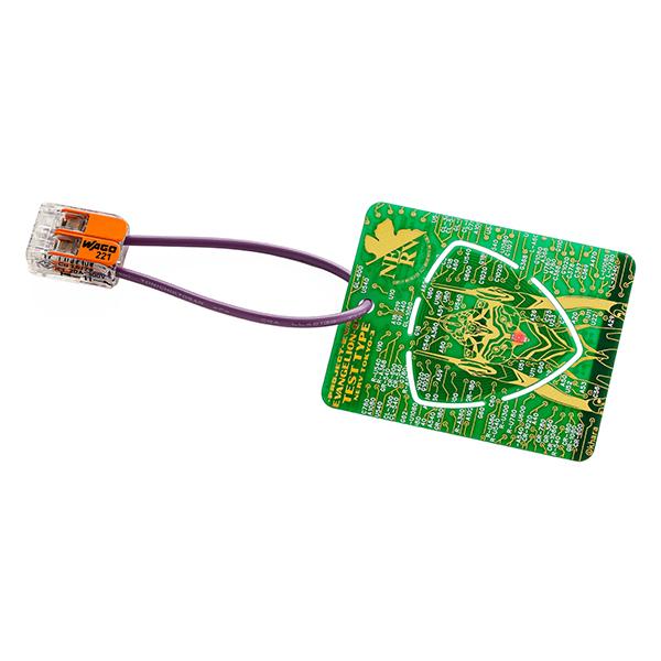 電波でLEDが光る回路を搭載している遊び心のあるギターピックキーホルダーです。基板CADでデザインし、本物の基板に電子部品を実装しました。