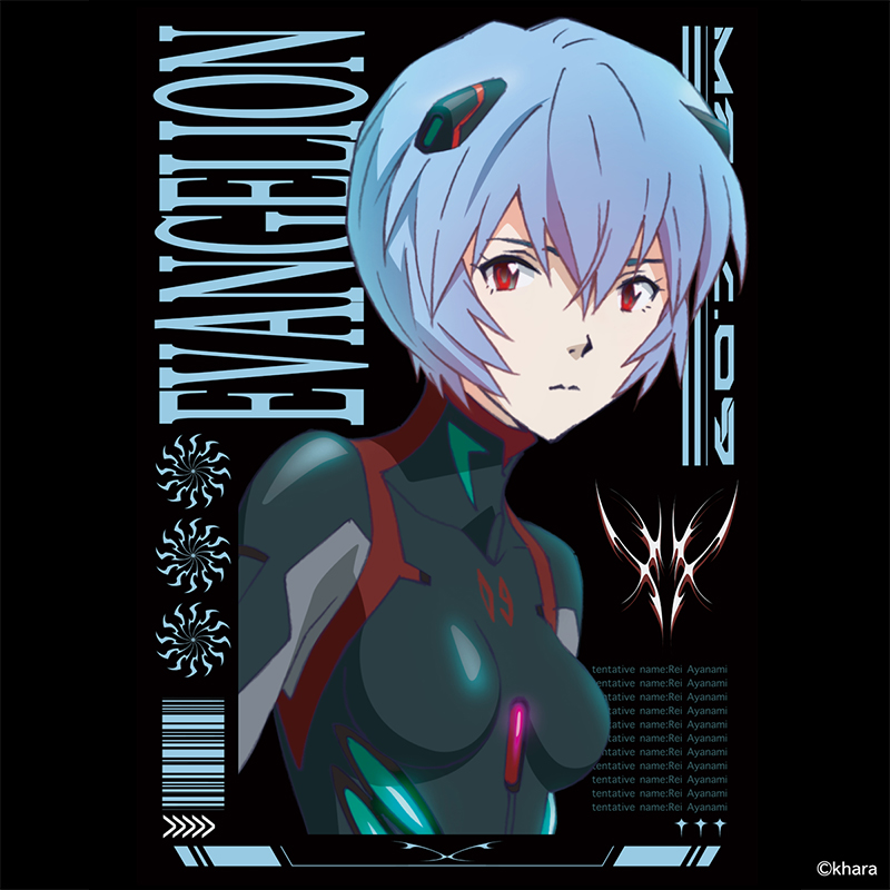 - 黒いプラグスーツ姿のアヤナミレイ(仮称)を大きく配したロングスリーブTシャツ。